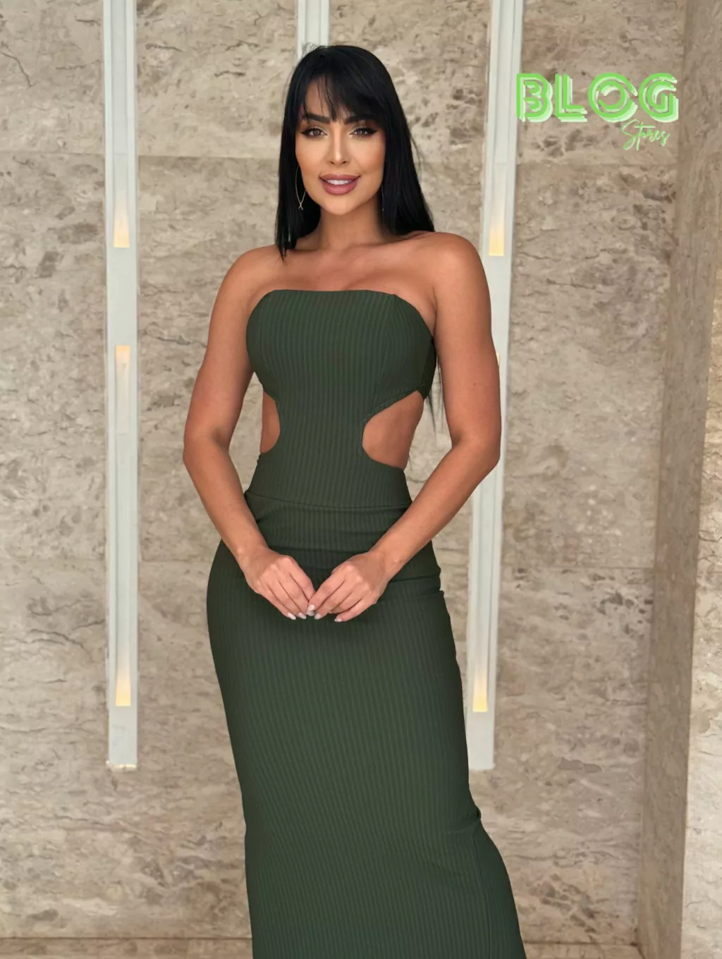 COMPOSIÇÃO VESTIDO: TECIDO LISO 93% POLIETSER 7% ELASTANO